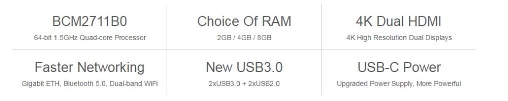 | SOC | BCM2835 | BCM2837B0 | BCM2711B0 | |||